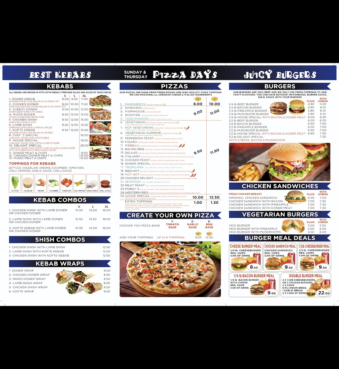 Highlights such as mixed meat and chips, kebab meals, and classic fried chicken bring familiar flavors to the table, making the experience approachable and easy-going. Alongside these, the menu features tasty garlic breads in a range of topping combinations and spicy wings, perfect for sharing or enjoying as a snack.